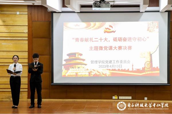 为深入学习贯彻党的二十大精神,增强大学生党员的党性修养,提高大学生党员的发展质量,以赛促学,增强党员教育的针对性有效性,sunbet官网党总支于2023年4月13日在图书馆报告厅举办了以“青春献礼二十大,砥砺奋进守初心”为主题的微党课大赛。sunbet官网党总支支委、学院办公室主任兼学院学生第一党支部书记孟琳老师、sunbet官网学生第二党支部书记吴迪铭老师、sunbet官网学生第三党支部书记赵荣军老师出席了此次大赛。