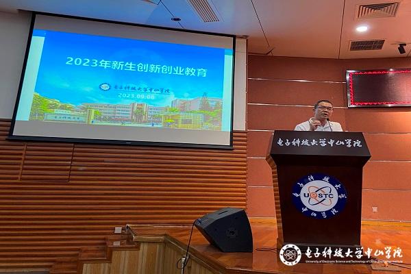 随后管理副院长佘时飞为同学们开展新生创新创业教育。佘时飞副院长为同学们介绍了创新创业教育及其重要意义和我校创新创业工作的开展,并鼓励同学们积极参与我校创新创业活动。佘时飞副院长希望同学们能够勇敢尝试,展示自我,明确自己未来发展方向,度过充实的大学四年。