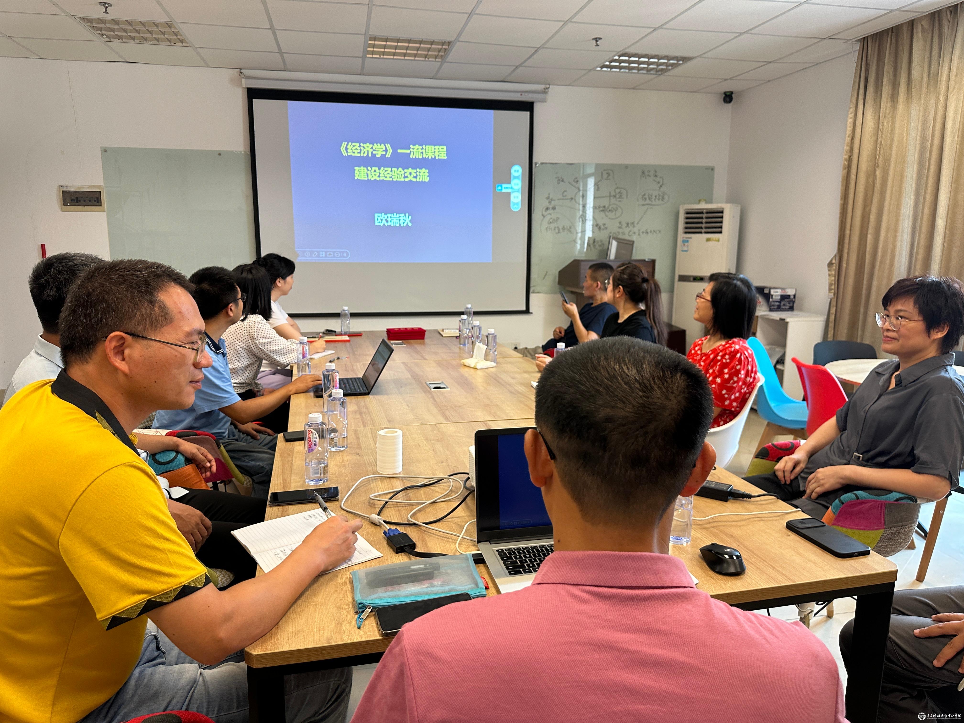 为了深化党建与业务的融合,坚持立德树人的根本任务,进一步推动学院教学工作的创新发展,2024年9月12日下午,工商管理系教师与教工党支部的党员在明德楼904,举行了主题为《经济学》省级一流课程建设经验交流会。本次分享会特邀在经济学领域有深厚造诣、2023年荣获全校学生评教最高分的欧瑞秋副教授主讲。